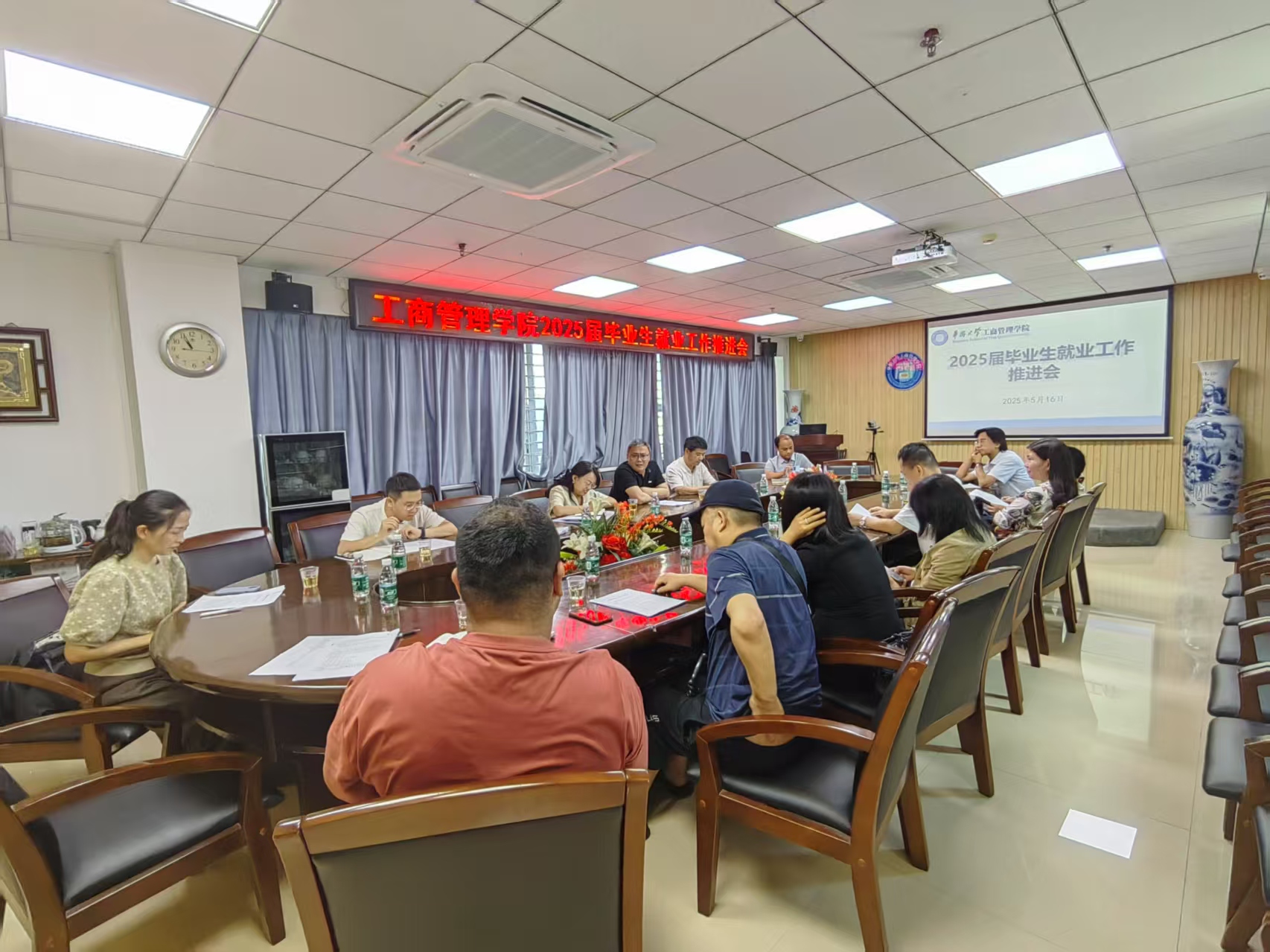 5月18日,永利集团304am登录2025届毕业生就业工作推进会在经管楼609举行。学院党委书记赖志淮、院长衣长军等党政领导班子成员、各系负责人、毕业班班主任及辅导员参会,共商就业推进举措,聚力破解难点问题。